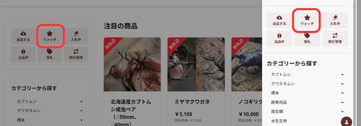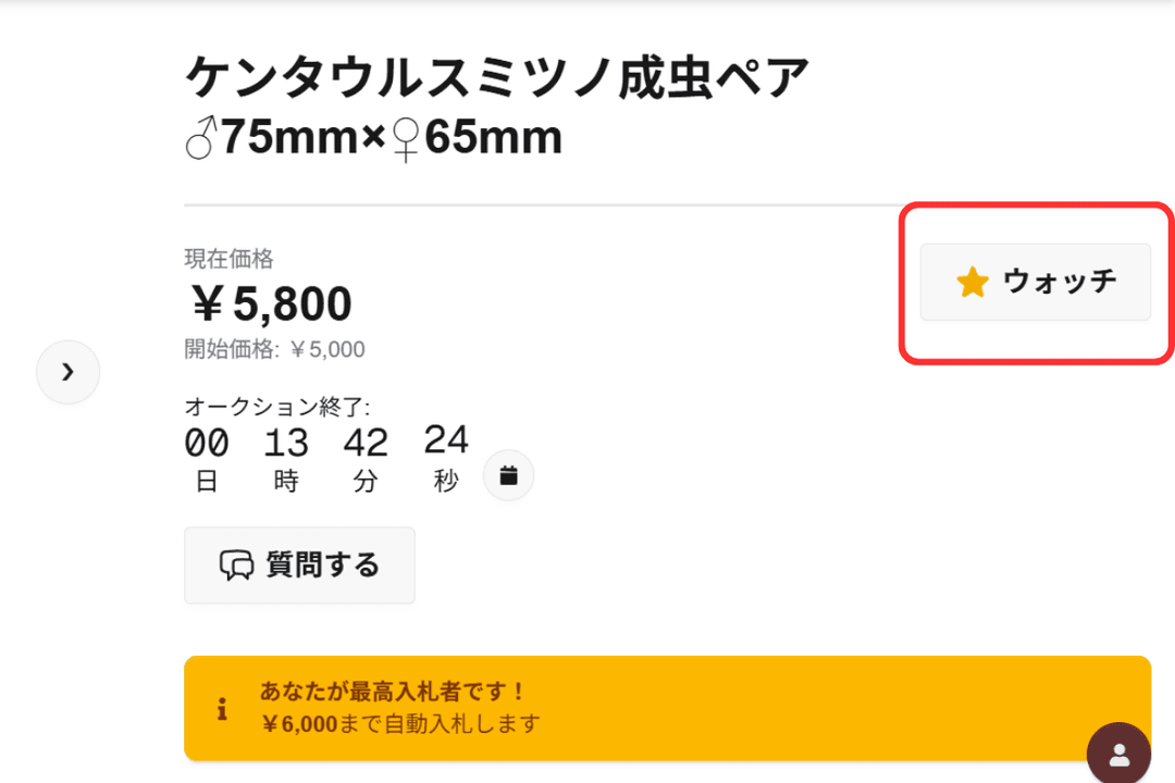 気になる商品が見つかったら、ウォッチリスト(お気に入り)に追加することができます。ウォッチリストに追加した商品はいつでも「ウォッチ(リスト)」で確認することができます。