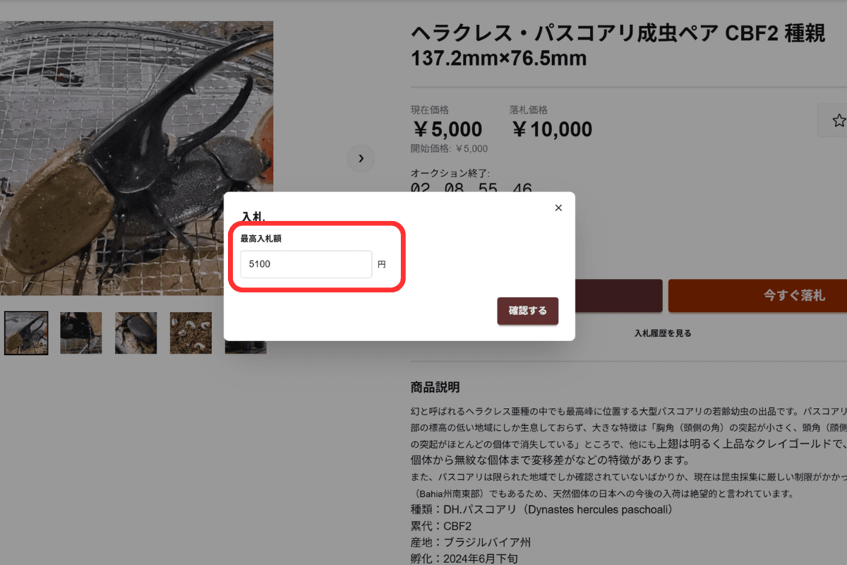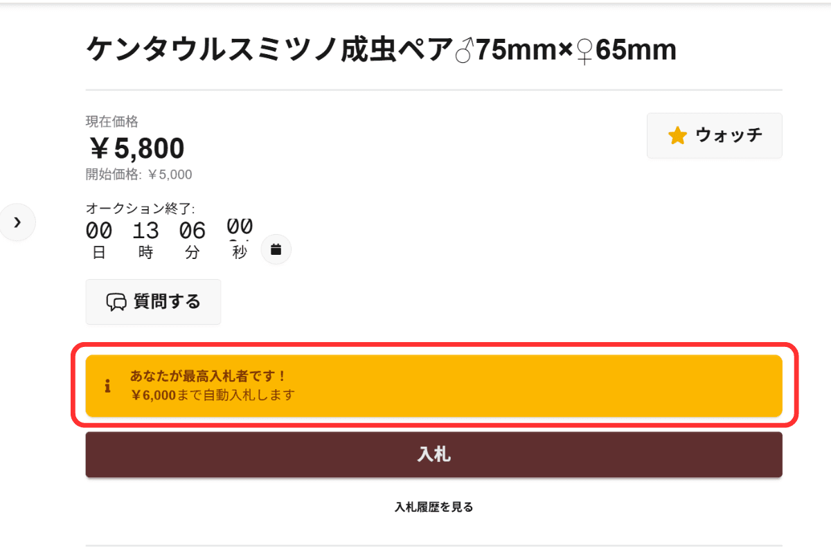 出品価格(現在価格)、オークション終了日時、他のユーザーからの入札などについてしっかりと確認をしてください。