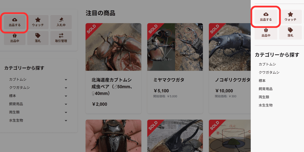 カブ王!オークションの「出品」から、表示される案内に沿って出品します。