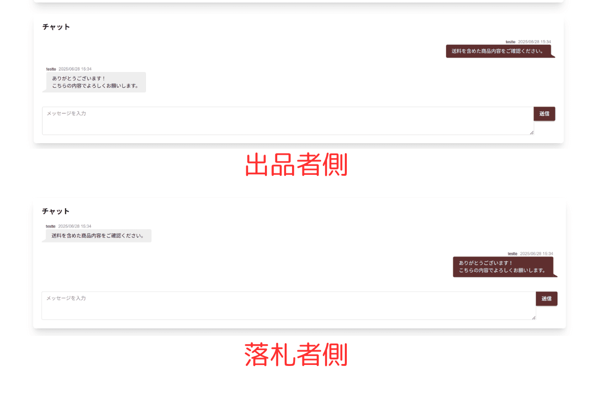 落札者からメッセージが届いたら、商品内容について確定させた後、配送先として必要な以下の情報を取り交わして、落札者の配送先を確認します。